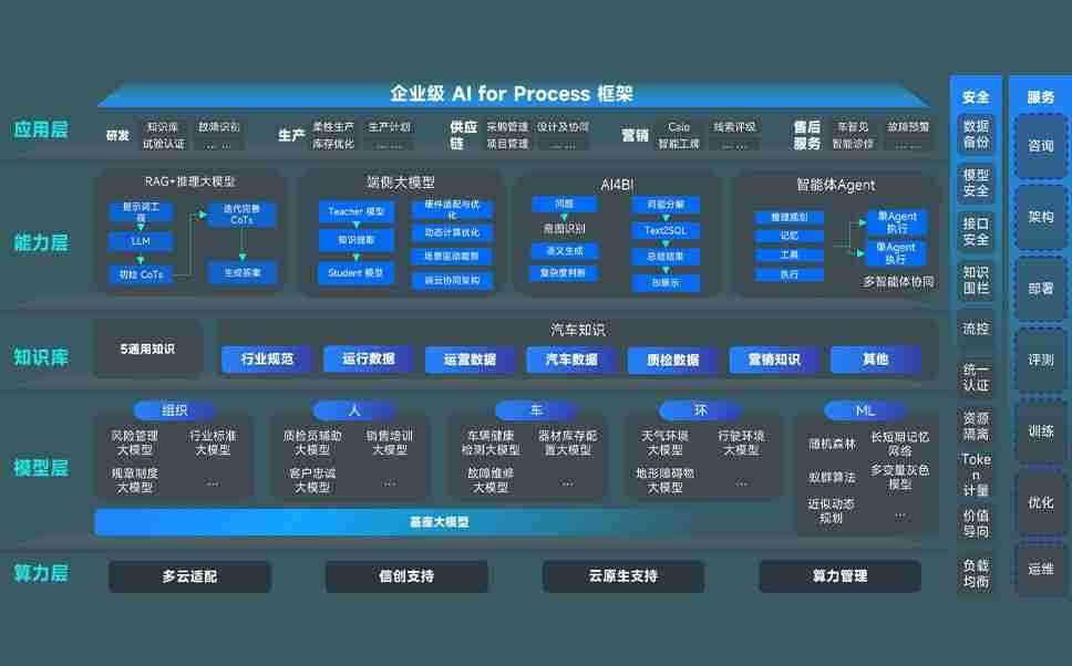 J9.COM问学智车解决方案是一套基于AI技术的汽车行业智能化系统,,覆盖从底层算力到顶层AI应用的全栈方案。。。方案由算力层、、模型层和应用层组成:算力层,,,,方案支持多种一体机配置,,,具备云端灵活部署、、、、多云适配以及动态优化计算资源的能力;模型层,,J9.COM问学平台版提供了企业级AI应用一站式构建与管理平台,,支持基于后训练强化技术的汽车企业专属模型的训练、、、、评测和运营;应用层,,,J9.COM问学DeepSeek版提供包括超级员工、、、、智能招采、、智能营销、、、智能客服、、AI for BI等一系列解决方案,,可助力汽车行业实现数字化转型,,,让管理更智能、、、响应更敏捷。。